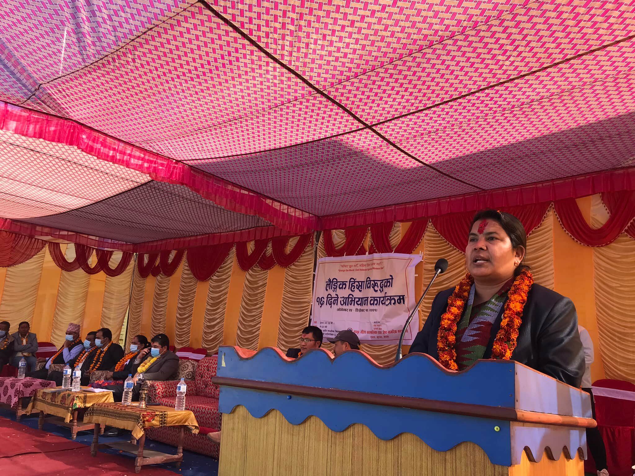 सरकारले चाहेर मात्र महिला तथा लैङ्गिक हिंसा अन्त्य नहुने भन्दै उनले घरभित्रै हुने विविध खालका हिंसा अन्त्य गर्न सबैले सहकार्य र जिम्मेवार भएर लाग्नुपर्ने धारणा व्यक्त गरिन ।