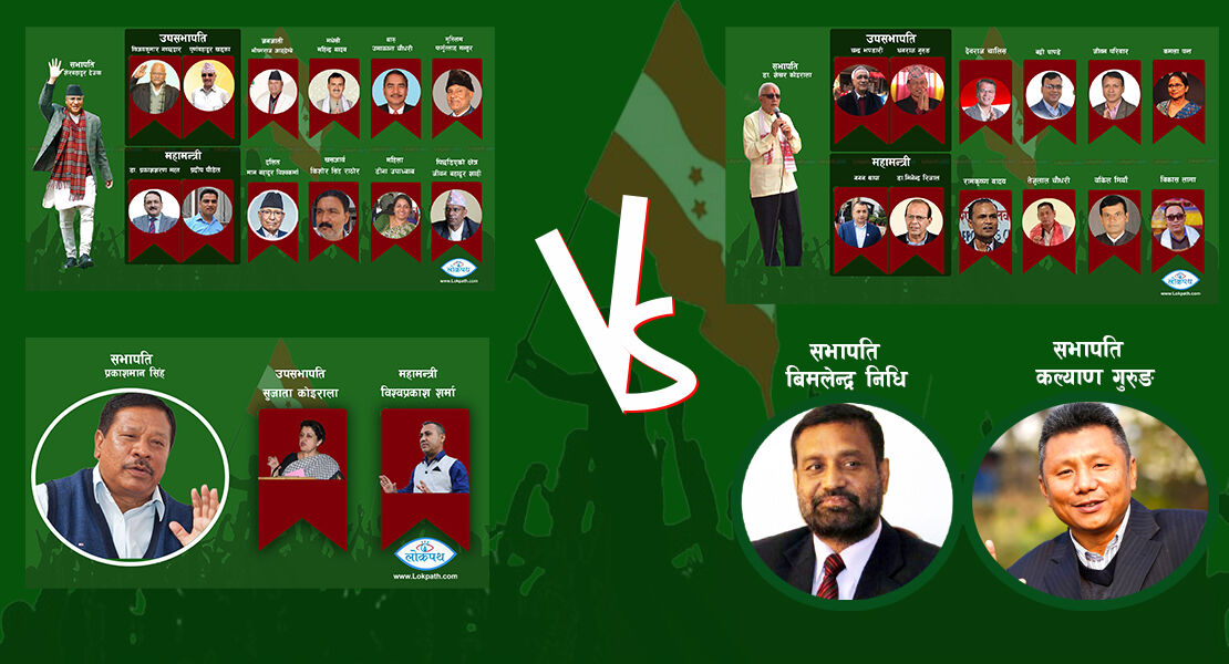 अन्तिम नामावलीअनुसार सभापतिमा शेरबहादुर देउवा, विमलेन्द्र निधि, प्रकाशमान सिंह, डा शेखर कोइराला र कल्याणकुमार गुरुङको उम्मेदवारी कायम छ । शनिबार सभापति पदमा उम्मेदवारी दिएका गोरखाका महाधिवेशन प्रतिनिधि युवराज न्यौपानेले भने उम्मेदवारी फिर्ता लिएका छन् । पाँच जनामध्येबाट सभापतिमा एकजना निर्वाचित गर्नुपर्ने छ ।