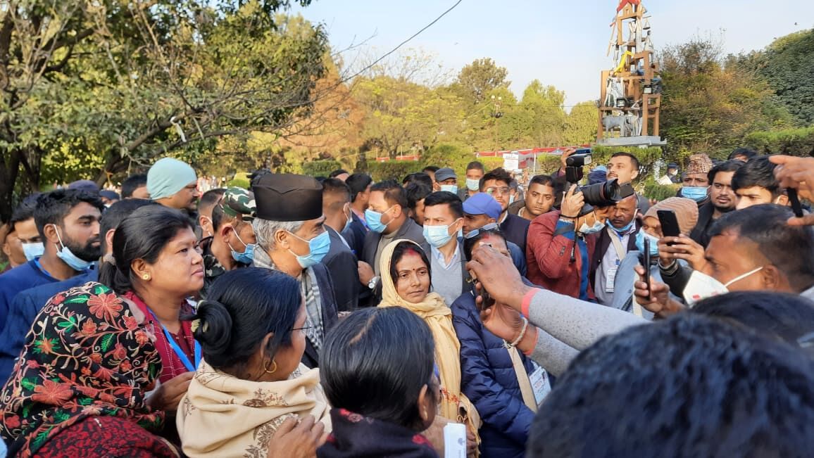मत माग्दै मतदान गरेका सभापतिका उम्मेदवार शेरबहादुर देउवाले महाधिवेशन स्थलमा डुलिरहेका छन् । आफूले मतदान गरेपछि देउवा मतदान स्थलको निरीक्षणमा निस्किएका हुन् ।