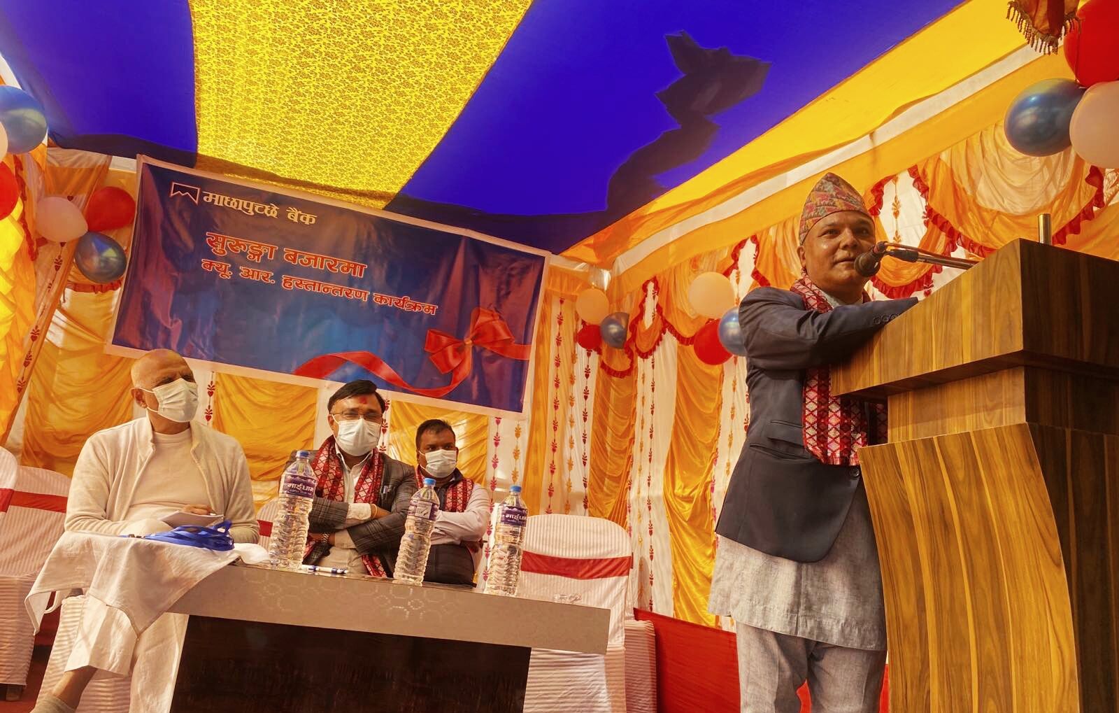उक्त कार्यक्रममा स्वागत मन्तव्य व्यक्त गर्दै माछापुच्छ्रे बैंकका प्रमुख कार्यकारी अधिकृत सन्तोष कोइरालाले आगामी दिनमा डिजिटल बैंकिङको अपरिहार्यताका बारेमा प्रकाश पारेका थिए ।
