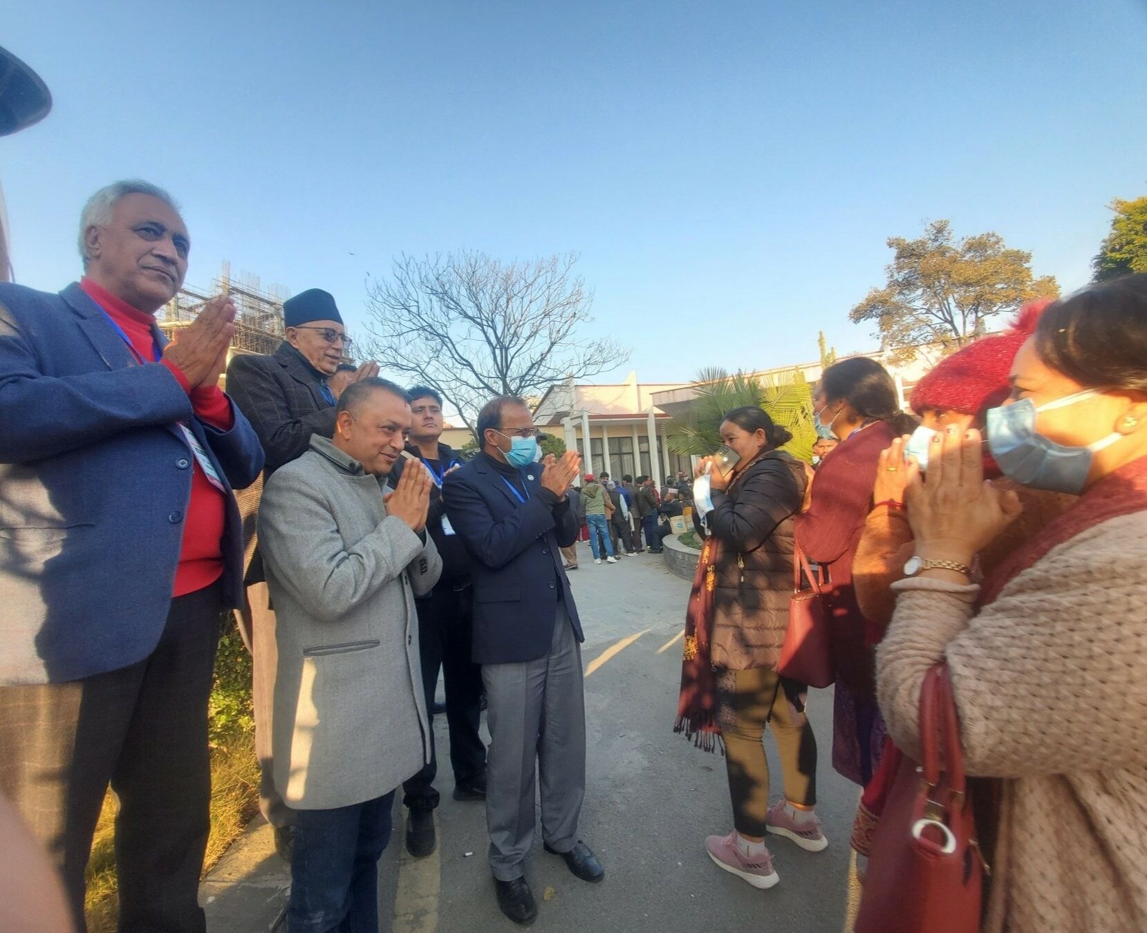 सो क्रममा नेपाली कांग्रेसको सभापति पदका उम्मेदवार डा. शेखर कोइराला आफ्ना अन्य उम्मेदवारसहित भोट माग्न लाइनमा बसेका छन् । उपसभापतिका उम्मेदवार चन्द्र भण्डारी र महामन्त्रीका उम्मेदवारद्वय गगनकुमार थापा र डा. मिनेन्द्र रिजाल भोट माग्न लाइनमा बसेका छन् ।