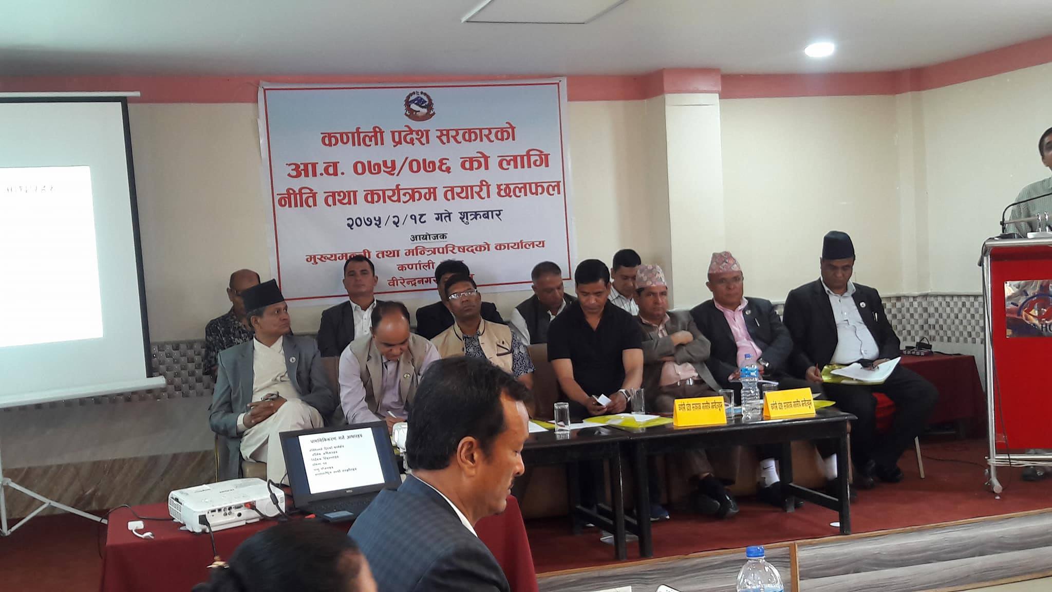 युवराज पंगाली / सुर्खेत । कर्णाली प्रदेश सरकारले आगामी वर्षको लागि नीति तथा कार्यक्रम तयारीको लागि छलफल सुरु गरेको छ ।