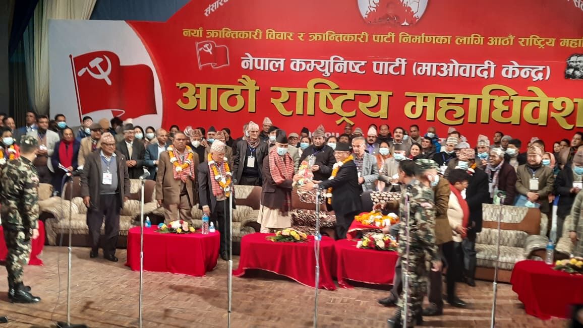 माओवादी केन्द्रको आठौँ राष्ट्रिय महाधिवेशन उद्घाटन समारोह दिउँसो ३ बजे सुरु भएको हो । महाधिवेशनले केन्द्रीय कमिटीसहित पदाधिकारी र नयाँ नेतृत्व चयन गर्नेछ । माओवादीको पदाधिकारी १५ सदस्य रहने प्रस्ताव गरिएको छ । जसमा १ अध्यक्ष, १ वरिष्ठ उपाध्यक्ष तथा ६ उपाध्यक्ष, एक महासचिव, दुई उपमहासचिव, ३ सचिव र १ कोषाध्यक्ष रहनेछन् ।