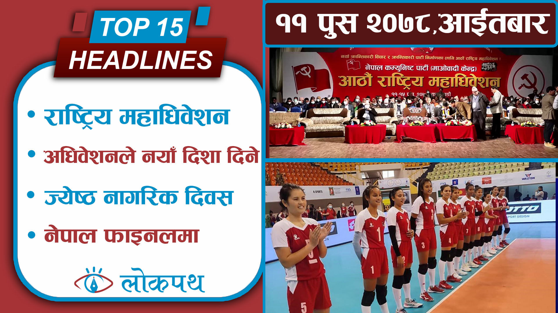 १. नेकपा माओवादी केन्द्रको आठौँ राष्ट्रिय महाधिवेशन आजबाट काठमाडौंमा सुरु, देशभरबाट १६ सय प्रतिनिधि सहभागी, ५ दिनसम्म चल्ने महाधिवेशनले पार्टीको नयाँ नेतृत्व चयन गर्ने ।