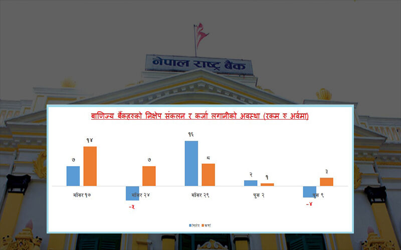 राष्ट्र बैंकका अनुसार आव २०७५/०७६ सम्म बैंक तथा वित्तीय संस्थाहरुको निक्षेपको वृद्धि कर्जाको भन्दा बढि रहेको थियो । तर २०७७ चैतयता भने कर्जाको वृद्धिदरले निक्षेपको वृद्धिदरलाई उछिनेको छ ।