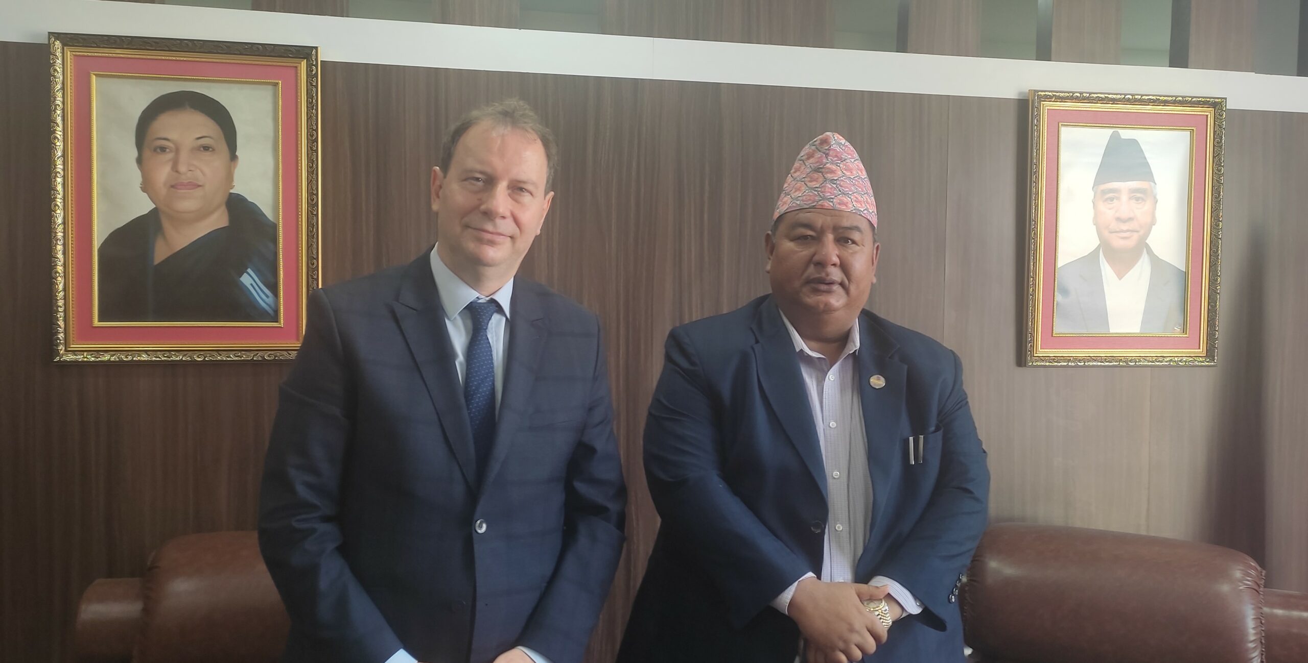 काठमाडौं । श्रम, रोजगार तथा सामाजिक सुरक्षामन्त्री कृष्णकुमार श्रेष्ठसँग नेपालका लागि फ्रान्सका राजदूत गिल्स बुर्बाओले शिष्टाचार भेट गरेका छन् ।