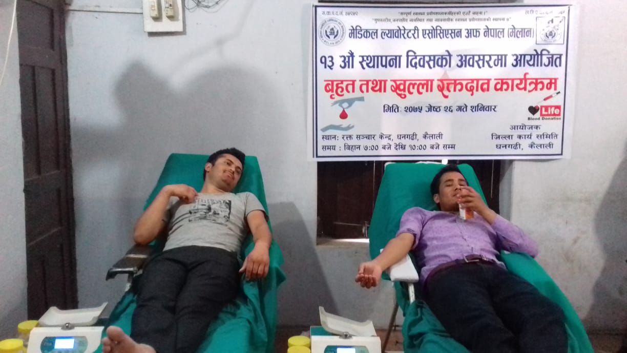 गगन अयडी धनगढी । मेडिकल ल्यावोरेटरी एसोसिएसन अफ नेपाल (मेलान) ले शनिबार बृहत्त रक्तदान कार्यक्रम गरेको छ ।