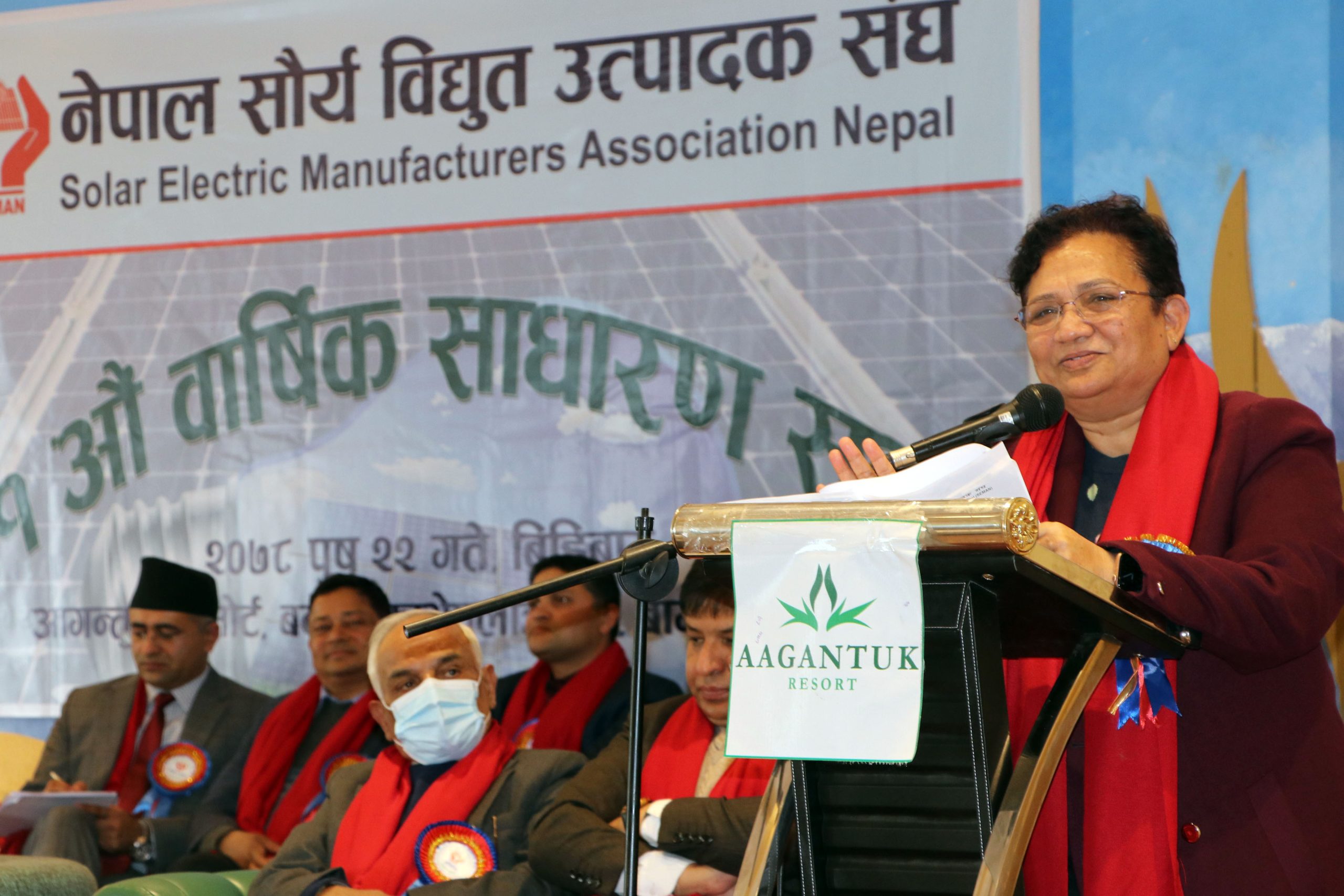 नेपाल सौर्य विद्युत् उत्पादक सङ्घको २१औँ वार्षिक साधारणसभालाई आज धुलिखेलमा सम्बोधन गर्दै मन्त्री भुसालले विद्युत् खपत गर्ने ठूला उद्योग स्थापनार्थ प्रोत्साहन गर्ने र विद्युतीय सवारीसाधनको प्रवद्र्धनदेखि हरेक क्षेत्रमा विद्युतीय उपकरण उपयोग गर्ने नीति अगाडि बढाएको बताइन् । सौर्य ऊर्जा उत्पादन गर्दा लागत कम हुने र समय कम लाग्ने भएकाले ऊर्जा सङ्कट समाधानका लागि सौर्य विद्युत् सहयोगी हुने उनको तर्क थियो ।