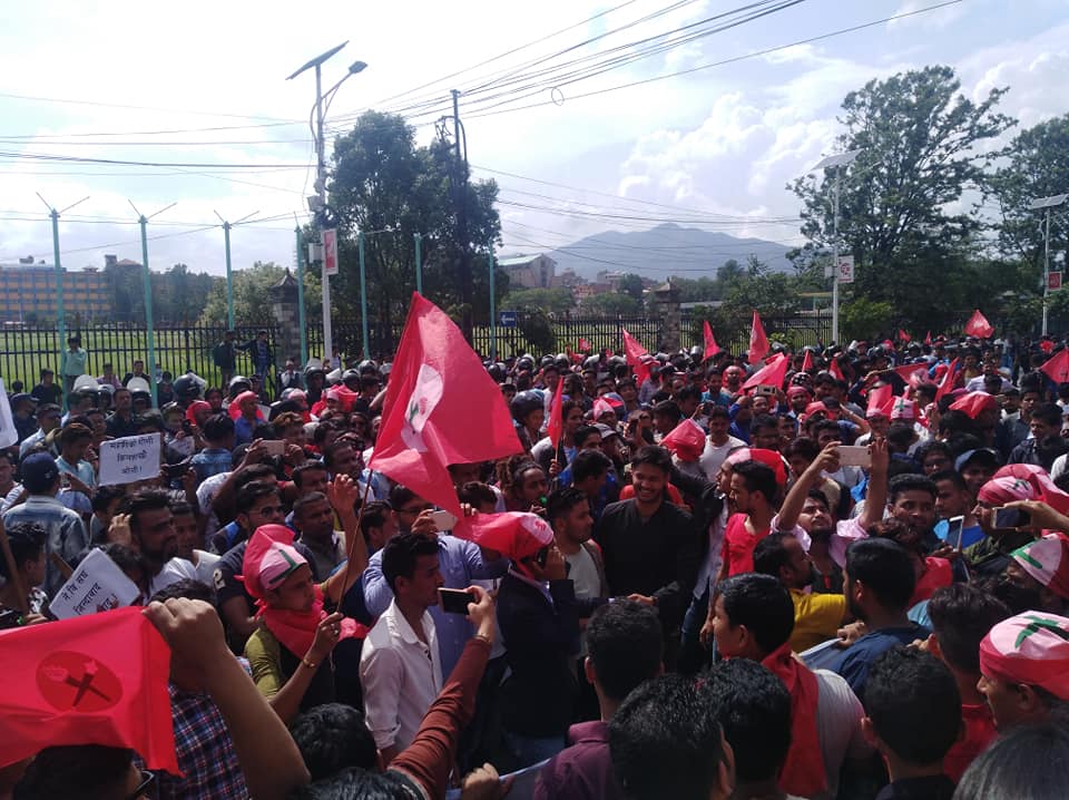 प्रदर्शन गर्दै विद्यार्थीहरू त्रिचन्द्र कलेज लगायतका ठाउँमा पुगेका थिए ।
