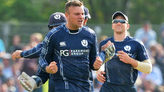 जोनी बिस्ट्रले प्रहार गरेको शतक पनि जितका लागि पर्याप्त हुन सकेन् । उनले १ सय ५ रन जोडेका थिए । यता बलिङतर्फ स्कटल्यान्डका मार्क वाटले सर्वाधिक ३ विकेट लिन सफल भए । अलास्डयर इभान्स र रिची बेरिङटनले समान २–२ विकेट लिए । त्यसअघि स्कटल्यान्डले ५ विकेटको क्षतिमा ३ सय ७१ रन बनाएको थियो ।