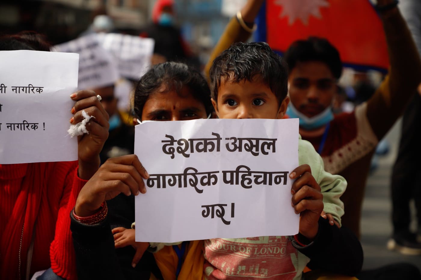 नागरिकताविहीन नागरिक संघर्ष समितिले आइतबार काठमाडौंको माइतीघर मण्डलामा नेपालको संविधानको धारा ११ को उपधारा ३ र ५ अनुसार जन्मसिद्ध र एकल आमाका सन्तानले नागरिकता पाउनुपर्ने माग राख्दै प्रदर्शन गरेको हो ।