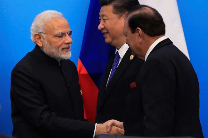 चीनको क्वीनोदाओमा आयोजित सघाई सहयोग संगठनद्वारा आयोजित कार्यक्रममा सहभागी हुँदा मोदीले राष्ट्रपति हुसेनसँग हात मिलाए ।
