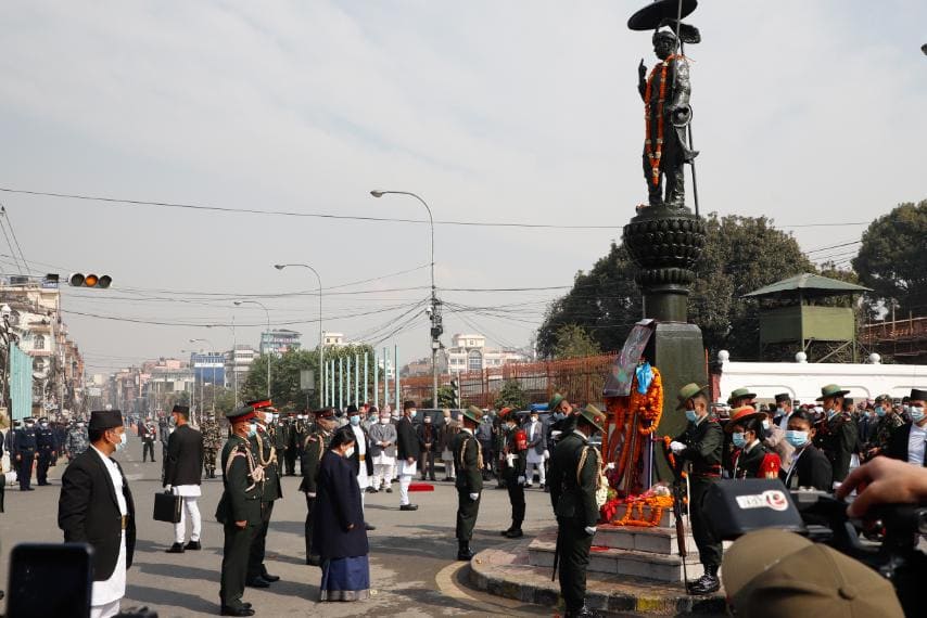 काठमाडौं । राष्ट्रपति विद्यादेवी भण्डारीले पृथ्वीजयन्तीको अवसरमा मंगलबार पृथ्वीनारायण शाहको शालिकमा माल्यार्पण गरेकी छन् ।