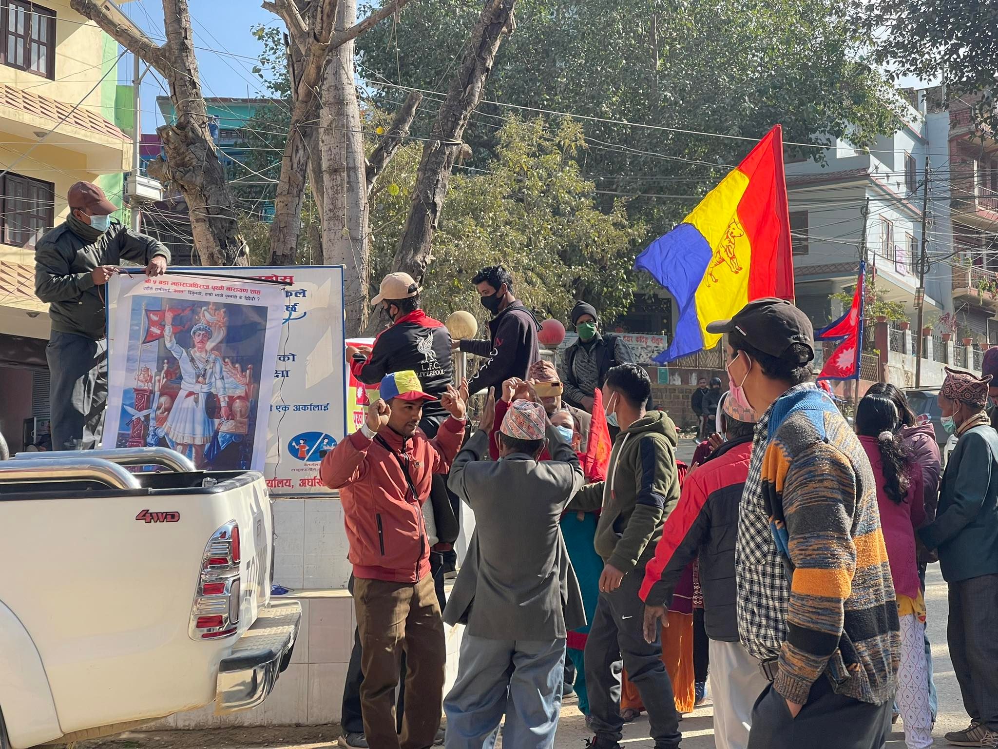 सन्धिखर्कको मुख्य चोकहरूमा प्रदर्शन गर्दै राप्रपा कार्यकर्ताहरूले गण्तन्त्र, संघीयता र धर्मनिरपेक्षता देशको लागि आवश्यक नभएकोले देशमा राजतन्त्रको विकल्प नभएको जोड दिएका छन् ।