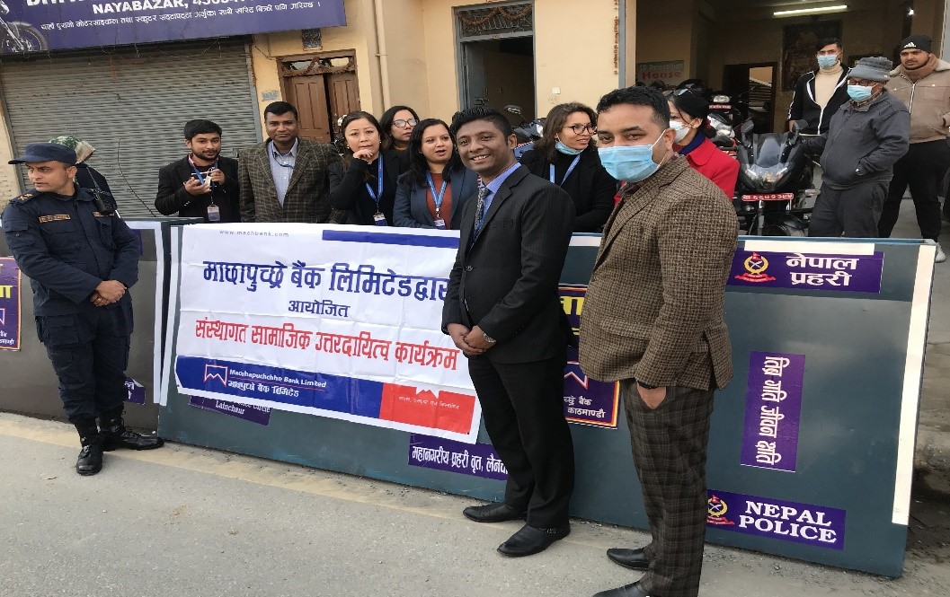 काठमाडौं । माछापुच्छ्रे बैंक लिमिटेडले सडक सुरक्षालाई मध्यनजर गर्दै महानगरीय प्रहरी बृत्त लैनचौरलाई तीन ओटा रोड ब्यारीगेट हस्तान्तरण गरेको छ । महानगरीय प्रहरी बृत्त लैनचौरले आयोजना गरेको एक कार्यक्रममा माछापुच्छ्रे बैंकका बाग्मती प्रदेश प्रमुख निरजमान सैजुले उक्त रोड ब्यारीगेट हस्तान्तरण गरेका थिए ।