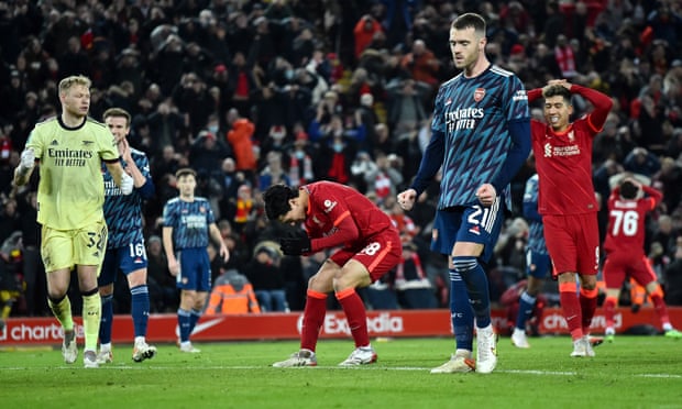 १० खेलाडीमा सीमित आर्सनलले लिभरपुललाई बराबरीमा राेक्याे