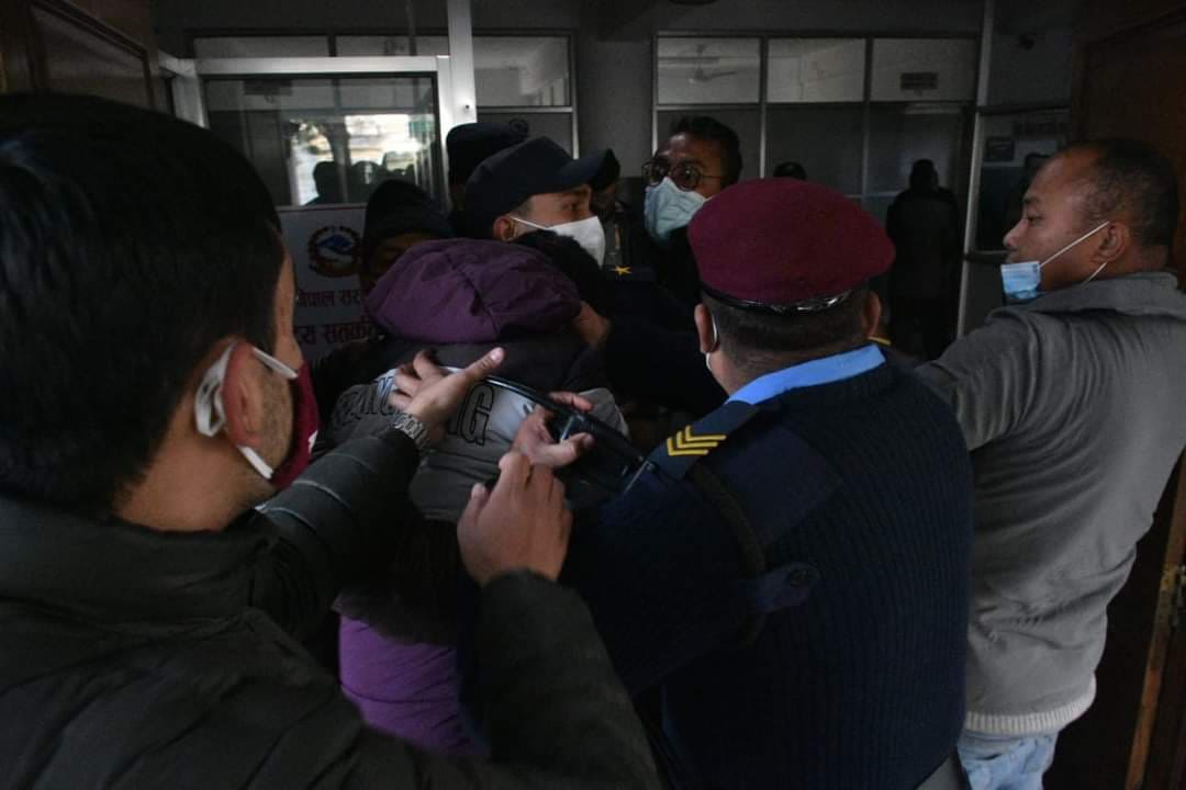 अनेरास्ववियुका नेता महेश श्रेष्ठ र स्थायी कमिटी सदस्य अमर पुनको नेतृत्वम गएको टोलीले उनीमाथि कालोमोसो दलेको हो । कालोमोसो दल्ने श्रेष्ठ र पुनलाई प्रहरीले गिरफ्तार गरेको छ । अनेरास्वियुले तत्काल उनीहरूको रिहाइको माग गरेका छन् ।