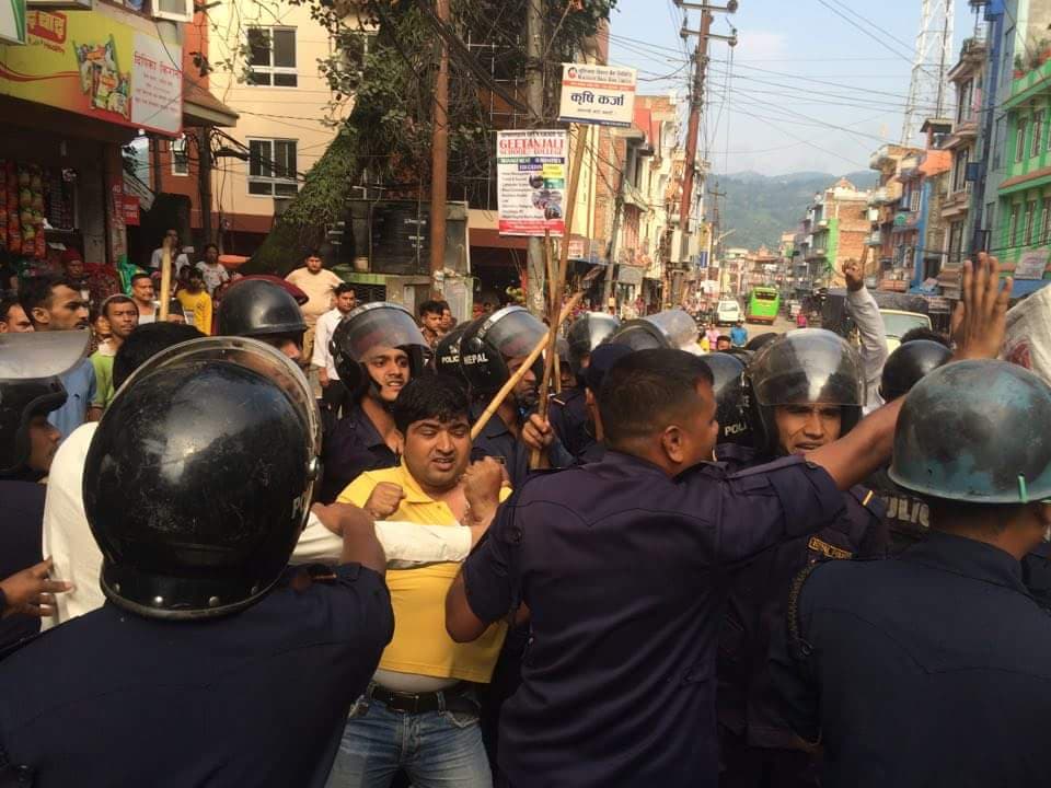प्रदर्शनका क्रममा प्रहरीसँग भएको घम्साघम्सीमा जिल्ला अध्यक्ष र्इश्वर अधिकारी सामान्य घार्इते भएको नेविसंघले दाबी गरेको छ ।