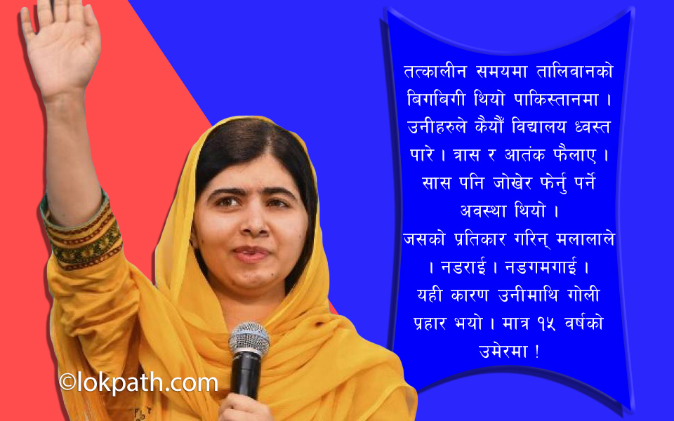 जसको प्रतिकार गरिन् मलालाले । नडराई । नडगमगाई ।