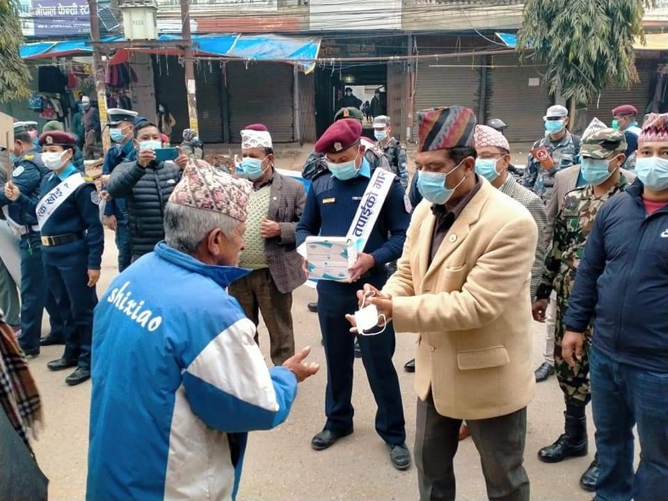 सुर्खेत । कर्णाली प्रदेशका मुख्यमन्त्री जीवनबहादुर शाही ‘तपाईंको मास्क खै ?’ भन्दै सडकमा निस्किएका छन् । शनिबार सुर्खेतको वीरेन्द्रनगर बजारमा मुख्यमन्त्री शाही ‘तपाईंको मास्क खै ?’ भन्दै सडकमा निस्किएका हुन् ।