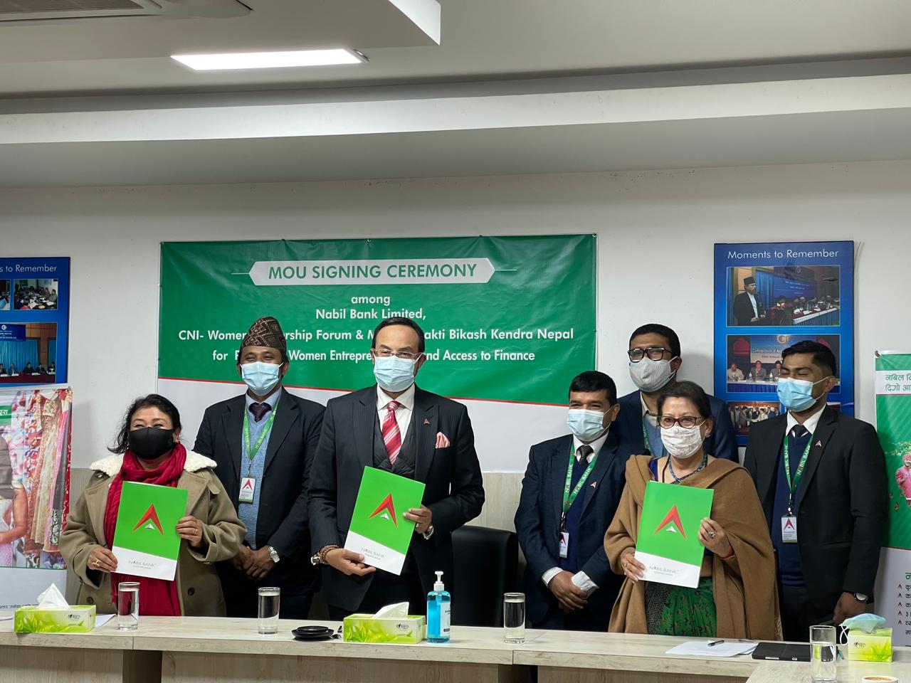 नेपाल उद्योग परिसंघ (सीएनआई)को प्रधान कार्यालय थापाथलीमा गरिएको उक्त सम्झौतामा नबिल बैंकको तर्फबाट प्रमुख कार्यकारी अधिकृत अनिल केशरी शाह, वुमन लिडरसीप फोरमको तर्फबाट संयोजक छाँया शर्मा र महिला शक्ति विकास केन्द्र नेपालको तर्फबाट कार्यकारी निर्देशक कविता गुरुङले हस्ताक्षर गरेका हुन् ।