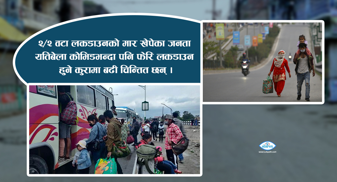 २/२ वटा लकडाउनको मार खेपेका जनता यतिबेला कोभिडभन्दा पनि फेरि लकडाउन हुने कुरामा बढी चिन्तित छन् ।