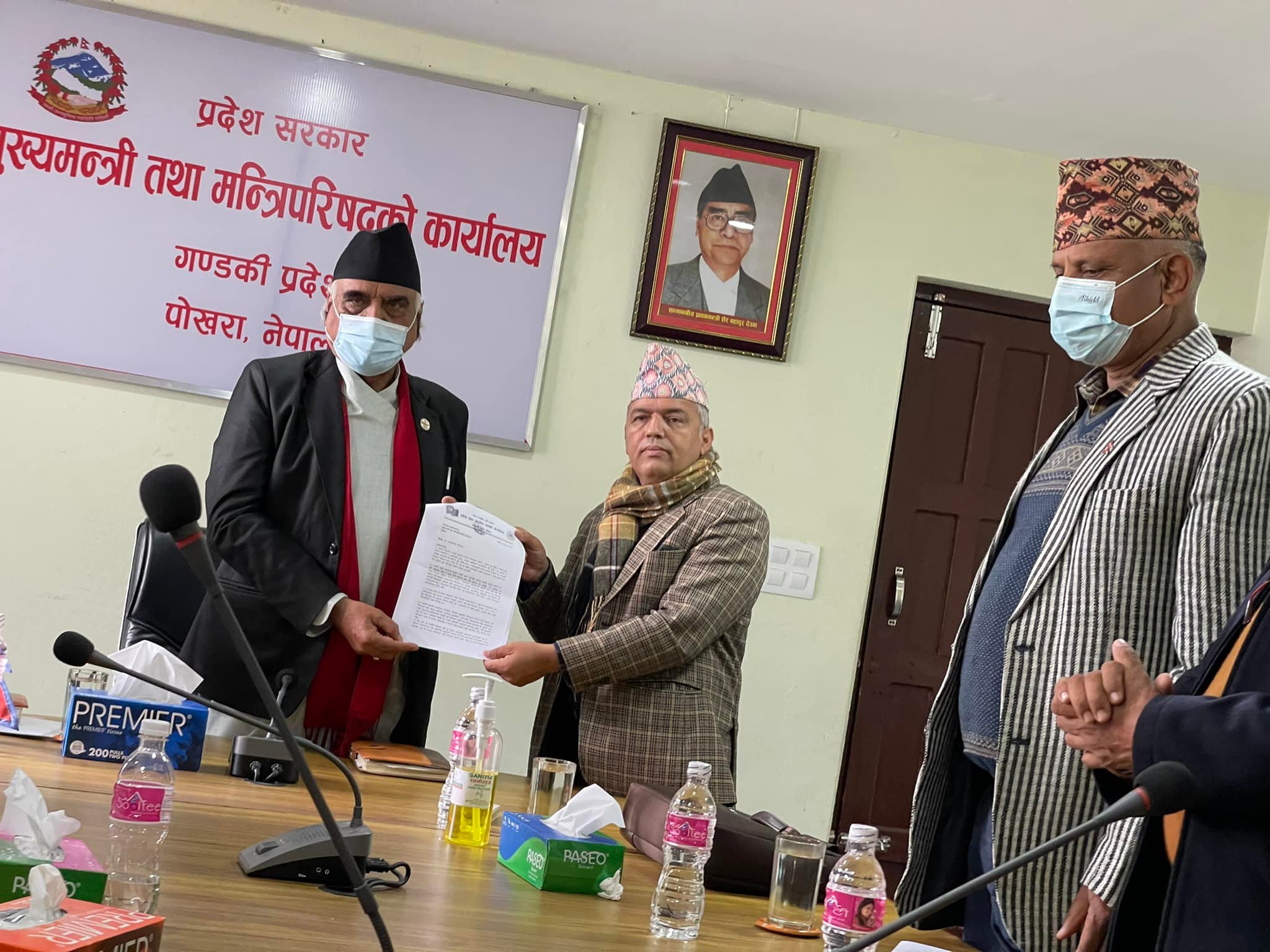 नेकपा एमाले संसदीय दल गण्डकी प्रदेश सभाले मितिः २०७८/१०/१०मा मुख्यमन्त्री माननीय