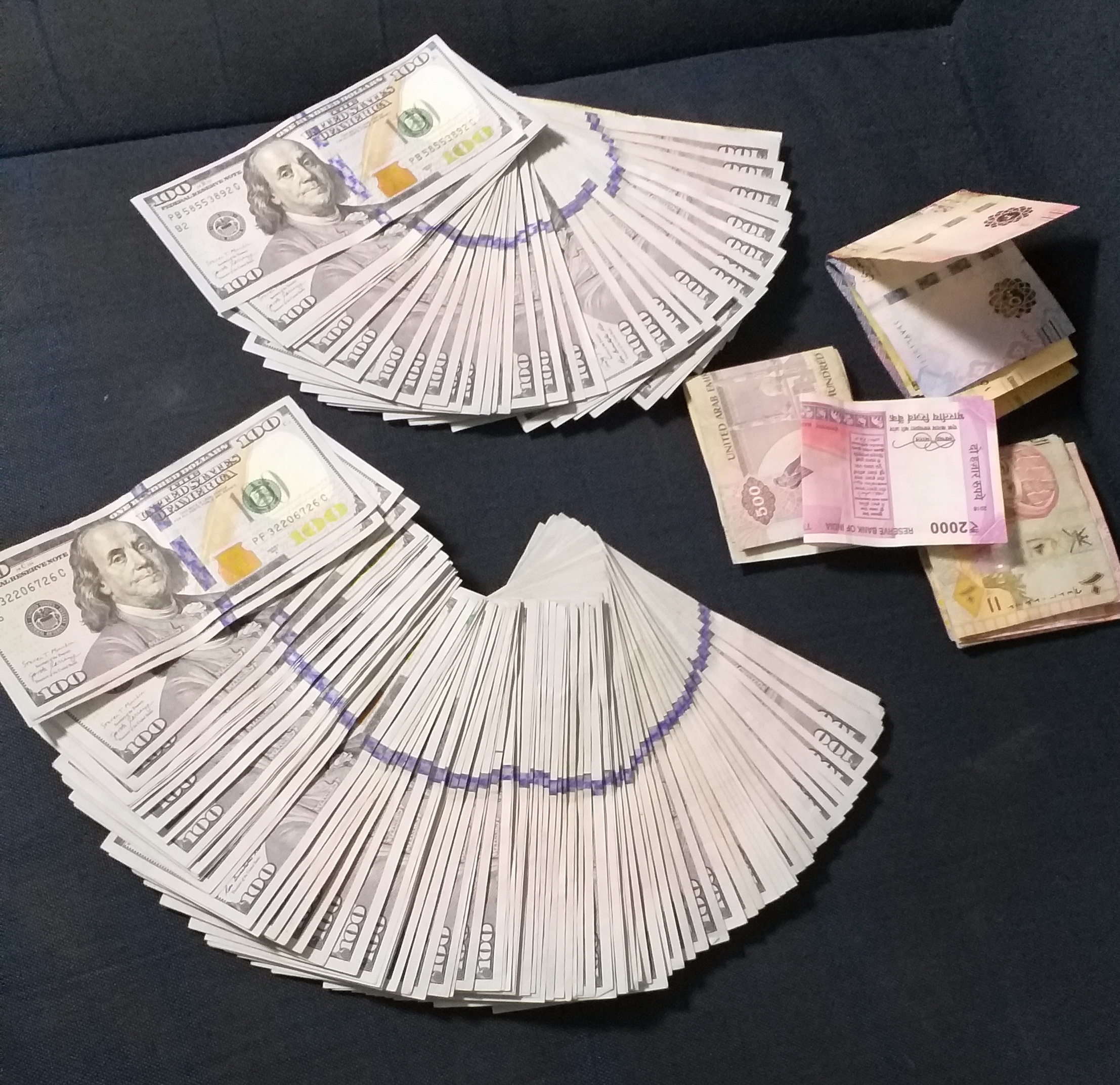 आइतबार उनीहरु फ्लाई दुवइको उडानद्वारा काठमाडौंबाट दुवई जान लागेका उनीहरुको साथबाट अवैध १५ हजार १ अमेरिकन डलर, ६१० साउदी रियाल, ३६ ओमानी रियाल, ९२० युएइ रियाल र २००० भारतीय रियाल बरामद गरिएको छ ।