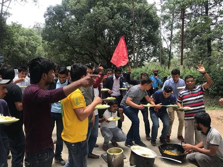 सरकारले पटक पटक पेट्रोलियम पदार्थ तथा दैनिक उपभोगका सामानहरुमा गरेको मूल्य वृद्धिले गर्दा बाहिर जिल्लाबाट काठमाडौं आएर भाडामा बस्ने विद्यार्थीहरु दैनिक जिवनमापनमा समस्या परेपछि कीर्तिपुर क्षेत्रमा चामल, नून, तेल, दाल, तरकारी मागेर दाउराले खाना पकाई बीच सडकमा खाना खाँदै मूल्य वृद्धि विरुद्ध आन्दोलन गरेको नेवि संघ केन्द्रिय महामन्त्री कुन्दन राज काफ्लेले बताए ।