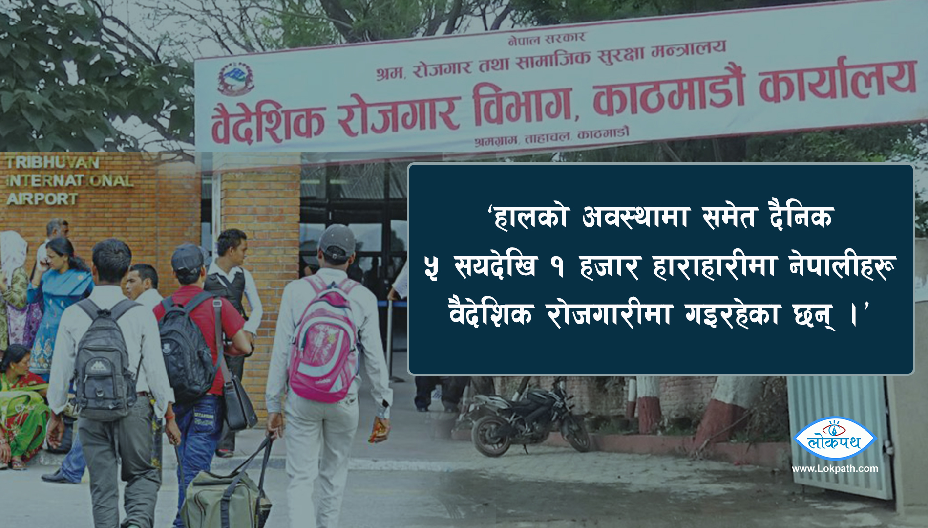 हालको अवस्थामा पनि दैनिक ५ सयदेखि १ हजार हाराहारीको औसत संख्यामा वैदेशिक रोजगारीमा गइरहेको तथ्यांक विभागसँग रहेको बताइएको छ ।