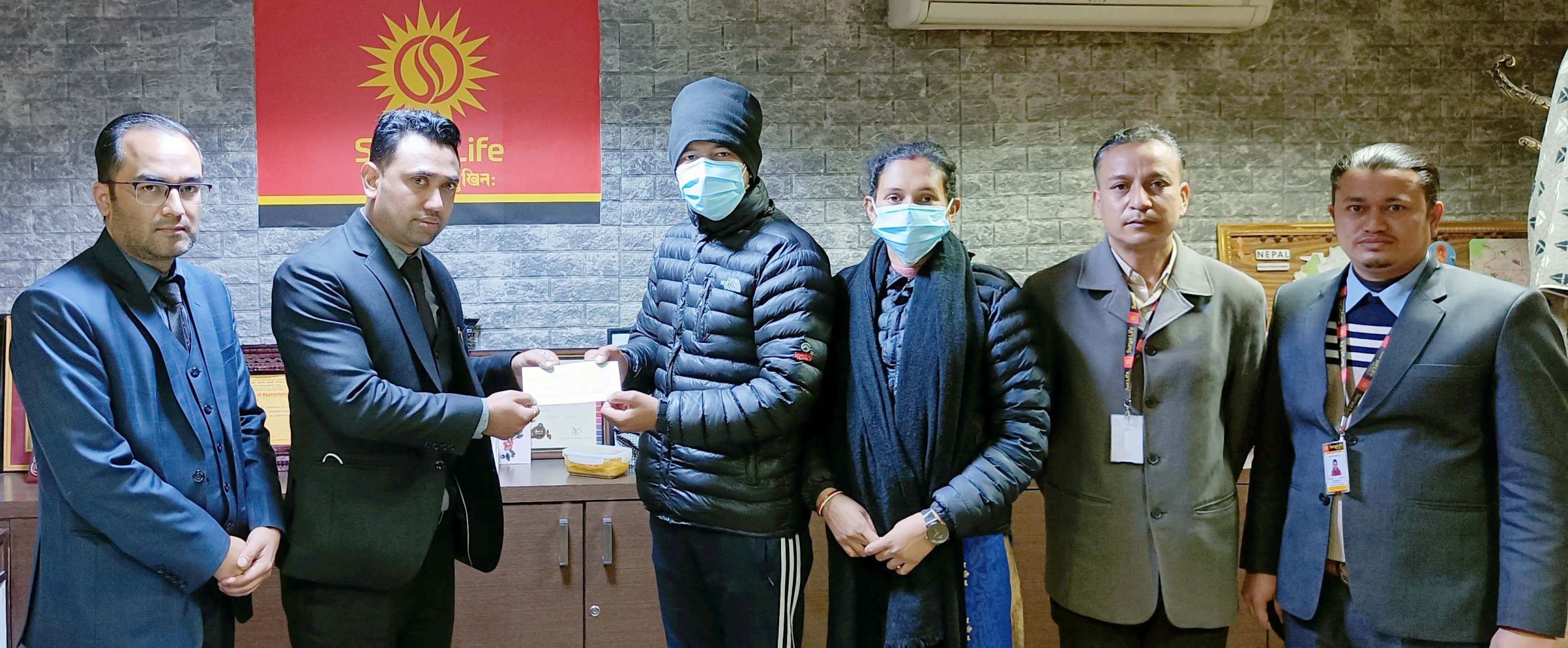 सूर्या लाइफ इन्स्योरेन्स कम्पनीका वरिष्ठ सहायक महाप्रबन्धक नरोत्तम ढकाल, दाबी विभागका प्रमुख राजु राजचल र दाबी विभागका कर्मचारी तारणी कटुवालको उपस्थितिमा मधु खत्रीलाई प्रमुख कार्यकारी अधिकृत पवन कुमार खड्काले चेक हस्तान्तरण गरेका थिए ।