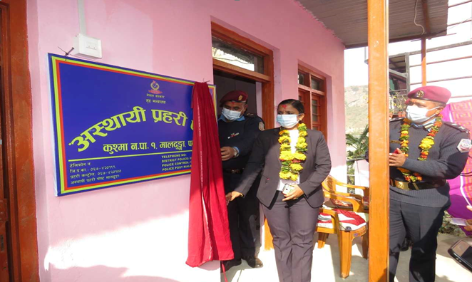 पर्वत । कुश्मा नगरपालिका-१ मालढुंगामा अस्थायी प्रहरी पोष्ट स्थापना गरी बिहीबारबाट सेवा शुभारम्भ गरिएको छ ।