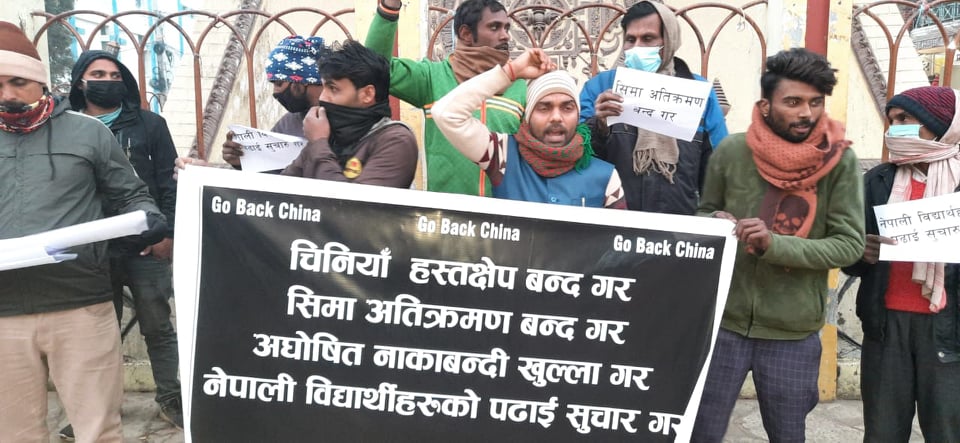 अभियान निकट राष्ट्रिय विधार्थी परिषद्का केन्द्रीय संयोजक विवेक कुशवाहाको नेतृत्वमा भएकाे प्रदर्शनमा चिनियाँ चिनियाँ राष्ट्रपति सी चिङपिङकाे पुतला पनि दहन गरिएकाे छ ।