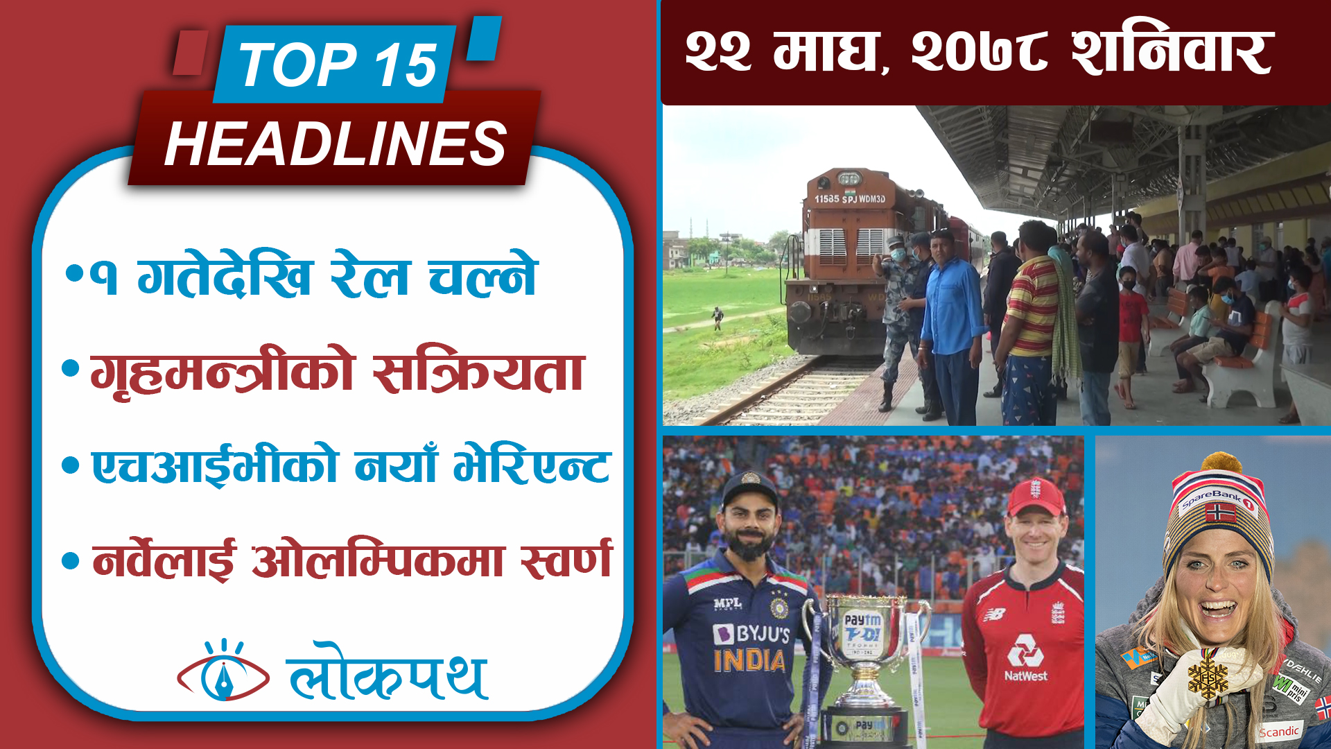९. जयनगर–कुर्था रेलमार्ग आउँदो फागुन १ गतेदेखि सञ्चालनमा आउने, औपचारिक उद्घाटन नभएसम्म फागुनदेखि दैनिक एकपटक रेल चलाउने तयारी ।