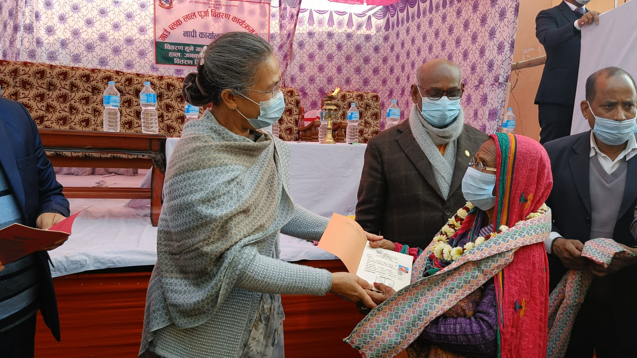 यसै क्रममा यसअघि मन्त्री श्रेष्ठले महोत्तरीको रामगोपालपुुर, सप्तरीको अग्नीसाइर कृष्णसवरण र तिरहुत गाउपालिका, चितवनको इच्छाकामना गाउँपालिका र सिरहाको गाउँब्लकमा रहेकाहरुलाई जग्गाधनी प्रमाण पुर्जा वितरण गरेकी थिइन् ।