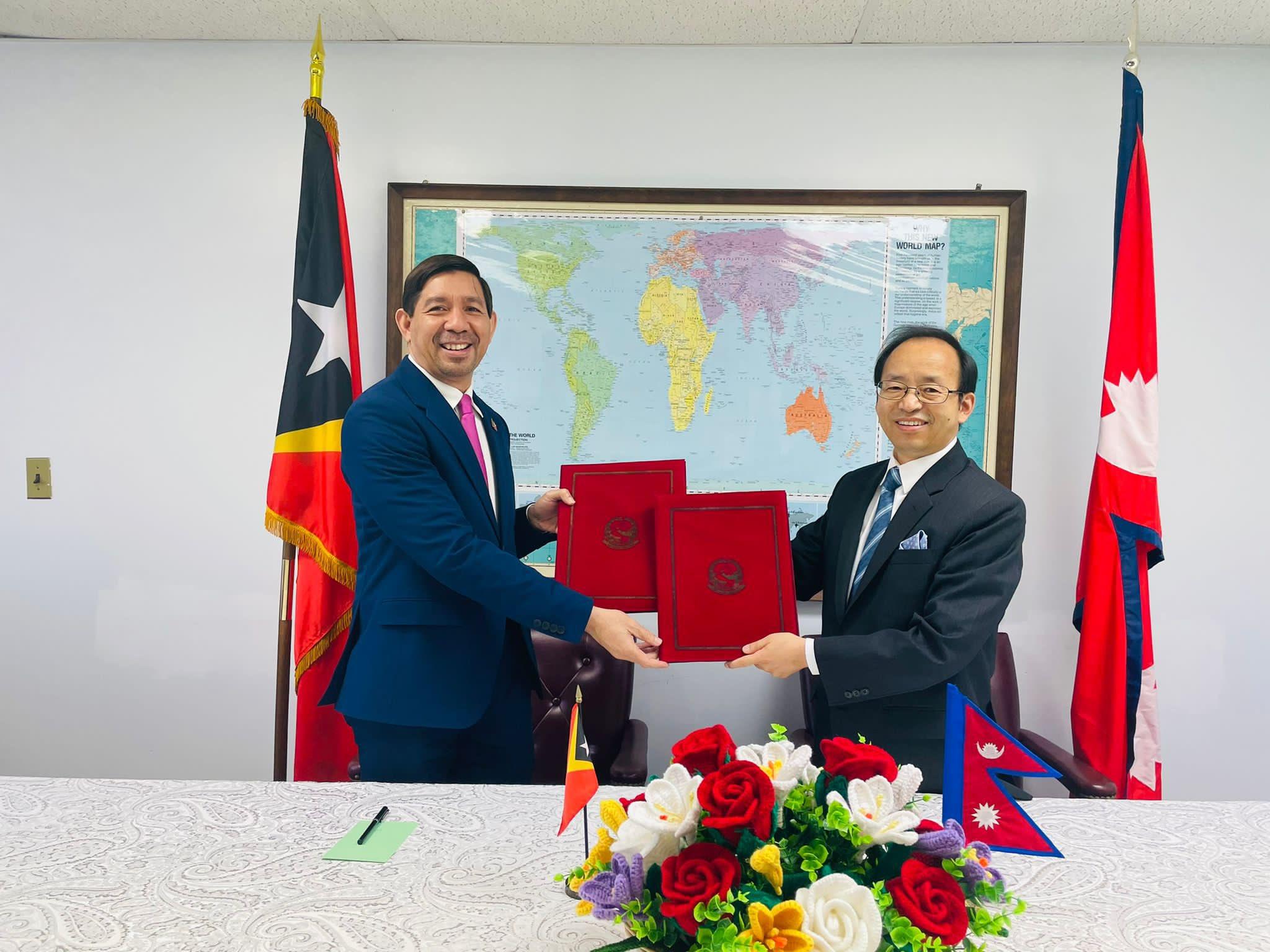 काठमाडौं । नेपाल र प्रजातान्त्रिक गणतन्त्र टिमोर–लेस्टेबीच कूटनीतिक सम्बन्ध स्थापना भएको छ । यो सँगै नेपालसँग द्विपक्षीय कूटनीतिक सम्बन्ध भएका देशको सङ्ख्या १७३ पुगेको छ । संयुक्त राष्ट्र सङ्घका लागि नेपालका स्थायी प्रतिनिधि अमृतबहादुर राई र सोही विश्व संस्थाका लागि उक्त मुलुकका स्थायी प्रतिनिधि कार्लिटो नुनेसले कूटनीतिक सम्बन्ध स्थापना गर्नेसम्बन्धी संयुक्त पत्रमा शुक्रबार हस्ताक्षर गरेका हुन् ।
