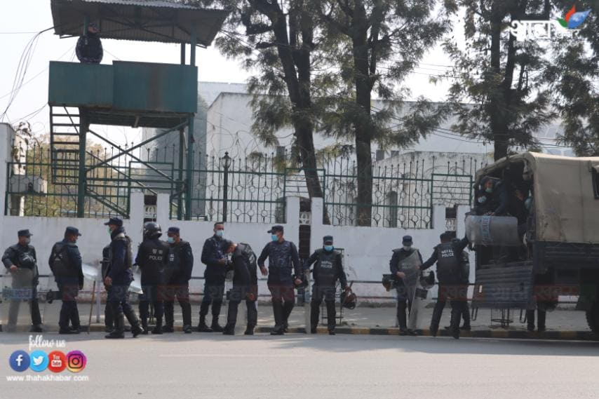काठमाडौं । सरकारले काठमाडौंको माइतीघरदेखि बानेश्वर चोकसम्म ठूलो संख्यामा सुरक्षाकर्मी तैनाथ गरेको छ ।