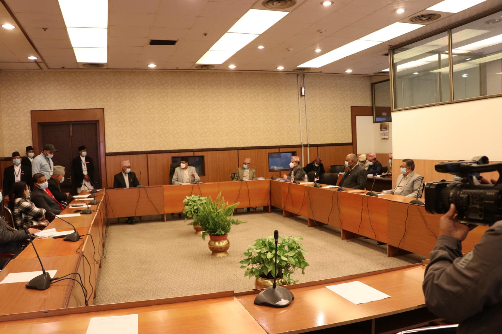 प्रतिनिधिसभाका सभामुख अग्निप्रसाद सापकोटाको अध्यक्षतामा जारी बैठकमा संसदको गतिरोध हटाउनेसहित अमेरिकी सहयोग परियोजना (एमसीसी) को विषयमा समेत छलफल भएको छ ।