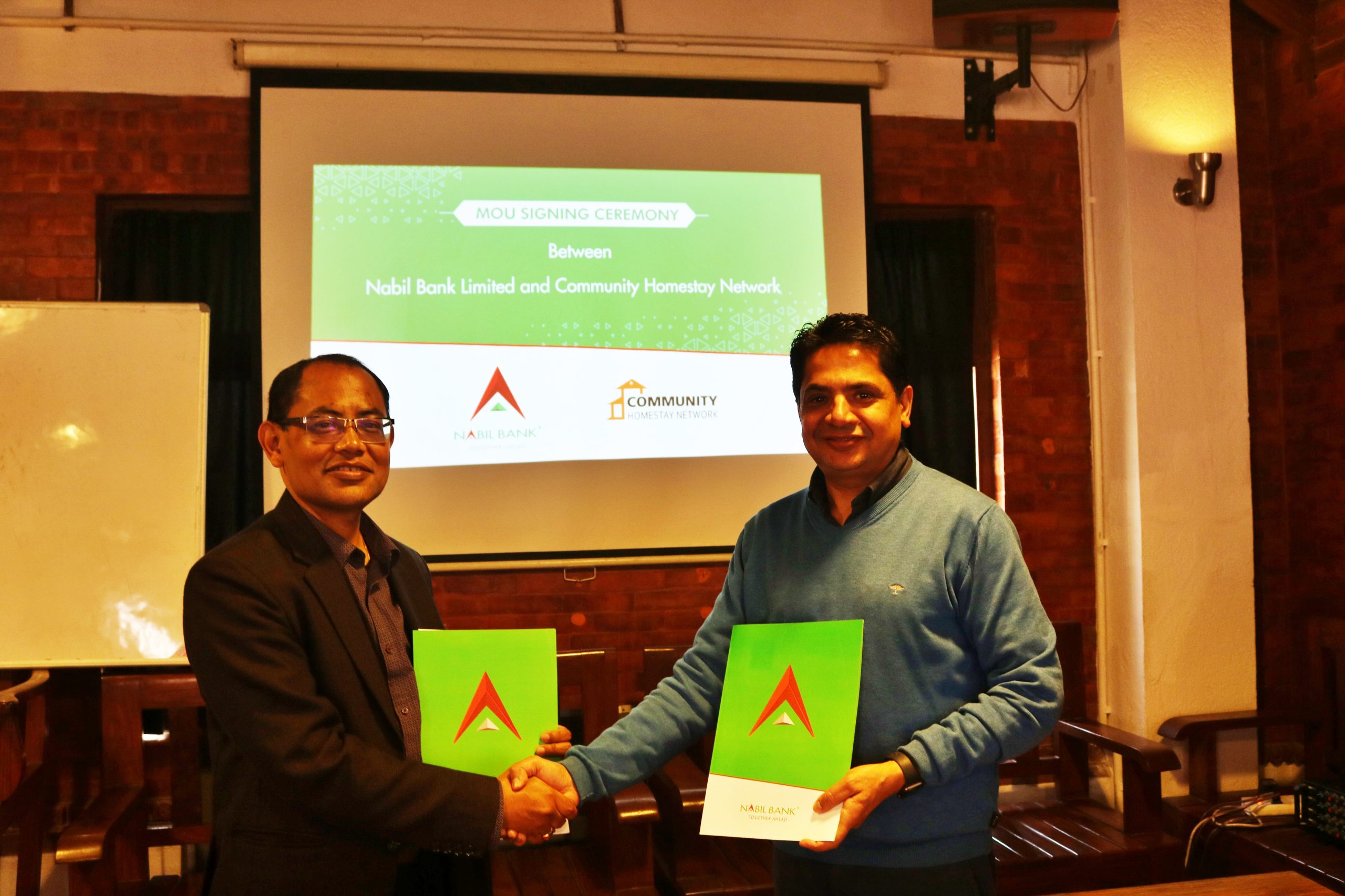 कम्युनिटी होमस्टे नेटवर्कको प्रधान कार्यालय दरवारमार्गमा गरिएको उक्त सम्झौतामा नबिल बैंकको तर्फबाट नायव प्रमुख कार्यकारी अधिकृत सुजितकुमार शाक्य र कम्युनिटी होमस्टे नेटवर्कको तर्फबाट अध्यक्ष शिवप्रसाद ढकालले हस्ताक्षर गरे ।