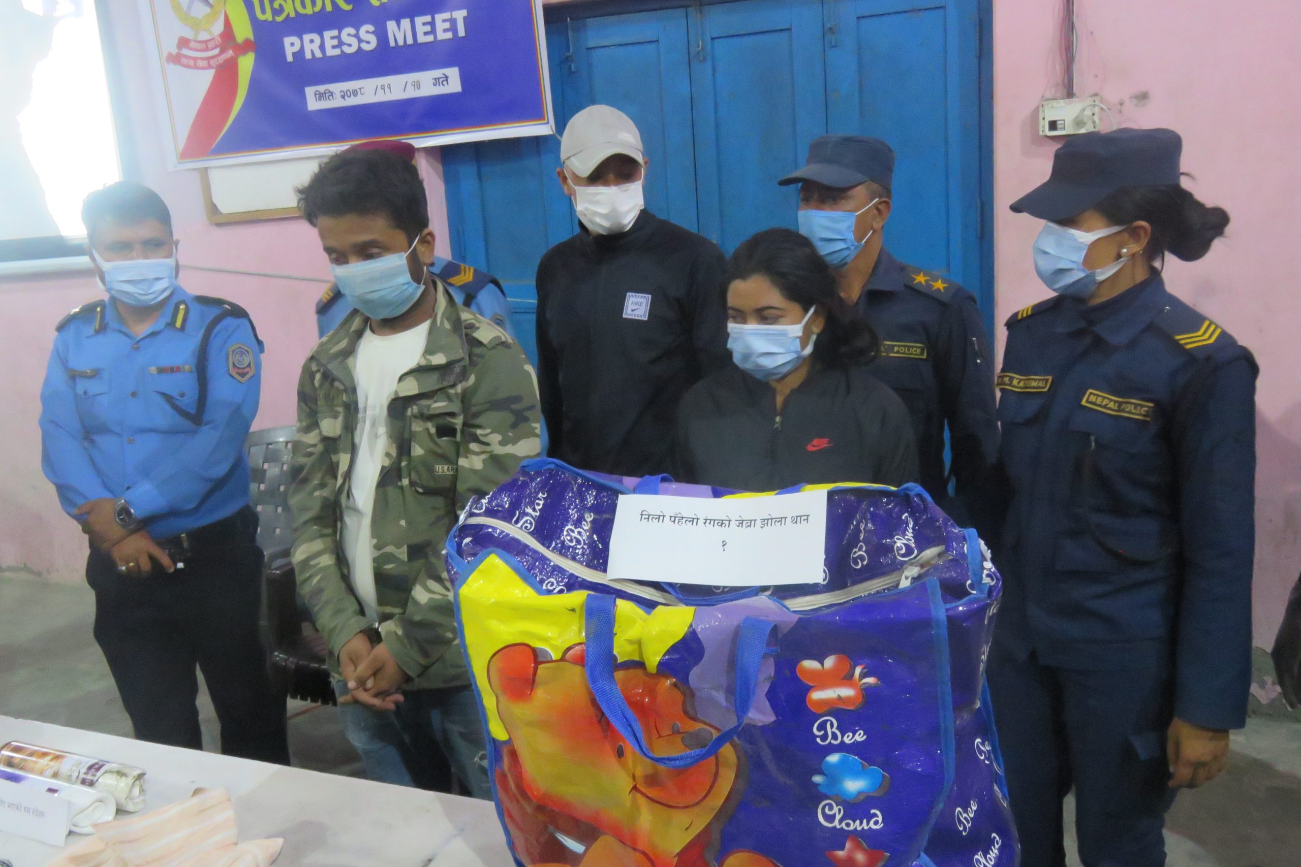 आफ्नै श्रीमानको हत्या गर्ने महिला र उनका प्रेमीलाई सुनसरी प्रहरीले पक्राउ गरेर सार्वजनिक गरेको छ । इलाका प्रहरी कार्यालय धरानले पत्रकार सम्मेलन गर्दै हत्या गरिएका झापा घर भएका दिनेश सिग्देलकी कान्छी श्रीमती ३० वर्षीया अनिता केसी र उनका प्रेमी विराटनगरका ४ इक्राही घर भएका २९ वर्षीय सरोज भण्डारीलाई सार्वजनिक गरेको हो ।