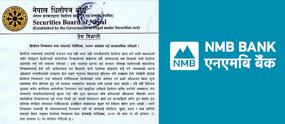 एनएमबी बैंकको एफपीअो बेच्न धितोपत्र बोर्डद्वारा वाँडफाँट निर्देशिका नै संशोधन (विज्ञप्तीसहित)