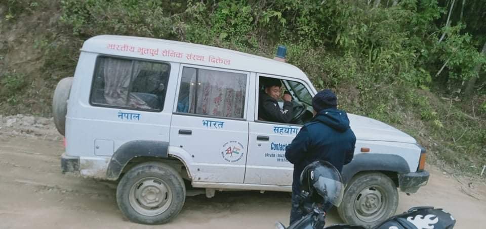 गाउँघरमा मट्टिमाला, पुलिक लगायतका पुराना चिजबिज खोज्दै हिँड्ने व्यक्तिलाई बोक्नका लागि सो एम्बुलेन्स प्रयोग गरेको जनाइएको छ । भारतीय राजदूतावासले जिल्लाका बिरामीको सहजताका लागि भारतीय भूतपूर्व सैनिक संघलाई सन् २०१५ मा सो एम्बुलेन्स दिएको थियो ।