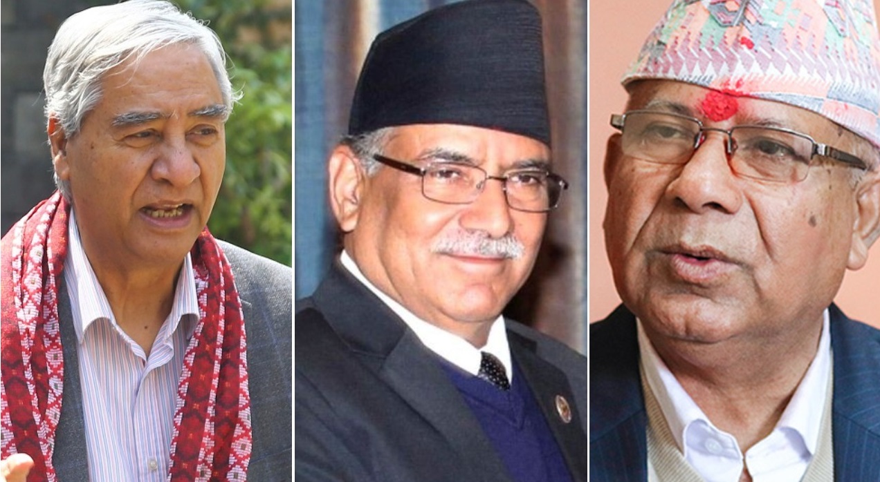तीन नेताबीच प्रधानमन्त्रीको सरकारी निवास बालुवाटारमा छलफल भएको प्रचण्डका प्रेस संयोजक सूर्यकिरण शर्माले जानकारी दिए । बिहीबार बिहान प्रचण्ड देउवालाई भेट्न बालुवाटार पुगेका थिए । दुई नेताबीच छलफलको केही समयपछि एकीकृत समाजवादीका अध्यक्ष नेपाल पनि सहभागी भएका हुन् ।