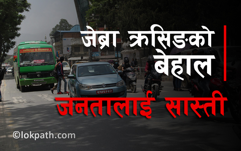 तर जो जेब्रा क्रसिङबाट बाटो काट्न चाहन्छन्, उनीहरुलाई पनि जेब्रा क्रसिङबाट बाटो काट्न उत्तिकै गाह्रो छ । अन्य स्थानमा त भइहाले, काठमाडौंको मुख्य क्षेत्र भनिने सुन्धारा, न्यूरोड, भृकुटीमण्डप, रत्नपार्क लगायतका स्थानमा पनि जेब्रा क्रसिङ मेटिँदै गएका छन् । तर राज्यले यसमा खासै महत्त्व दिएको छैन ।