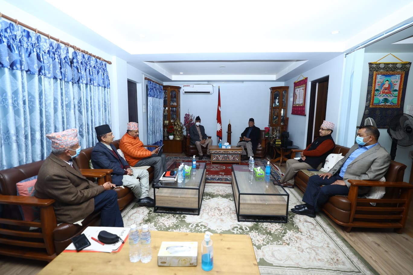 प्रधानमन्त्री शेरबहादुर देउवा र एमाले अध्यक्ष केपी शर्मा ओलीसहितको दुई दलका शीर्ष नेताहरुको बैठक बसेको छ ।