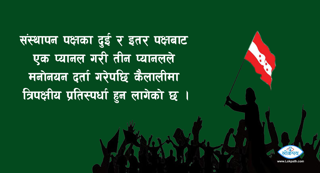 ‘कैलाली जिल्लामा संस्थापन पक्षको बलियो उपस्थिति रहेको छ । उनीहरू एक भएमा इतर समूह विजयी हुने देखिँदैन’, पार्टीका एक नेताले भने, ‘अहिले तीन समूहमा विभाजन भए मत पनि बा“डिने देखिन्छ । तर इतर समूहको मत एक रुपमा आउ“दा केही मतान्तरले इतर समूहलाई विजयी गराउन सकिन्छ ।’