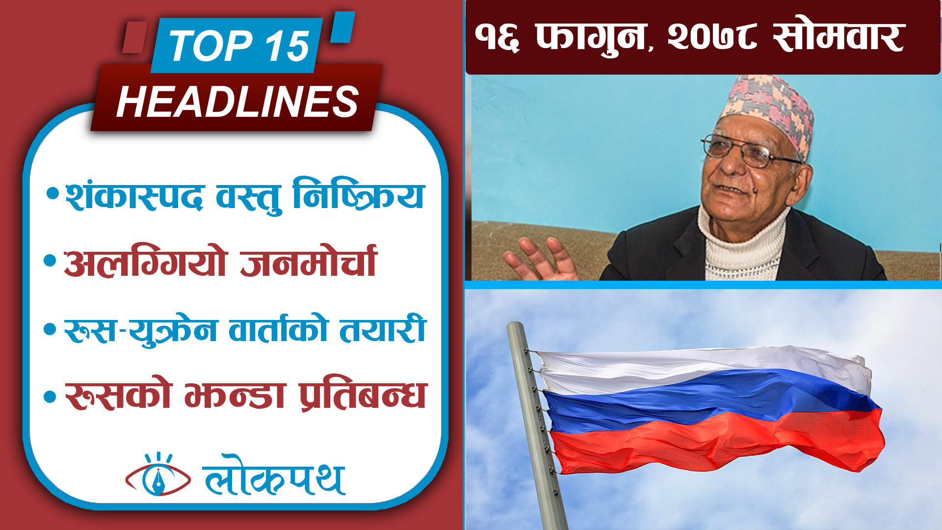 ५. त्रिभुवन विश्वविद्यालयमा डेढ महिनादेखि लगाइको तालाबन्दी अझै खुलेन, प्रधानमन्त्री देउवा र शिक्षामन्त्री देवेन्द्र पौडेलको असहयोगका कारण ताला खुल्न नसकेको पदाधिकारीहरूको आरोप ।