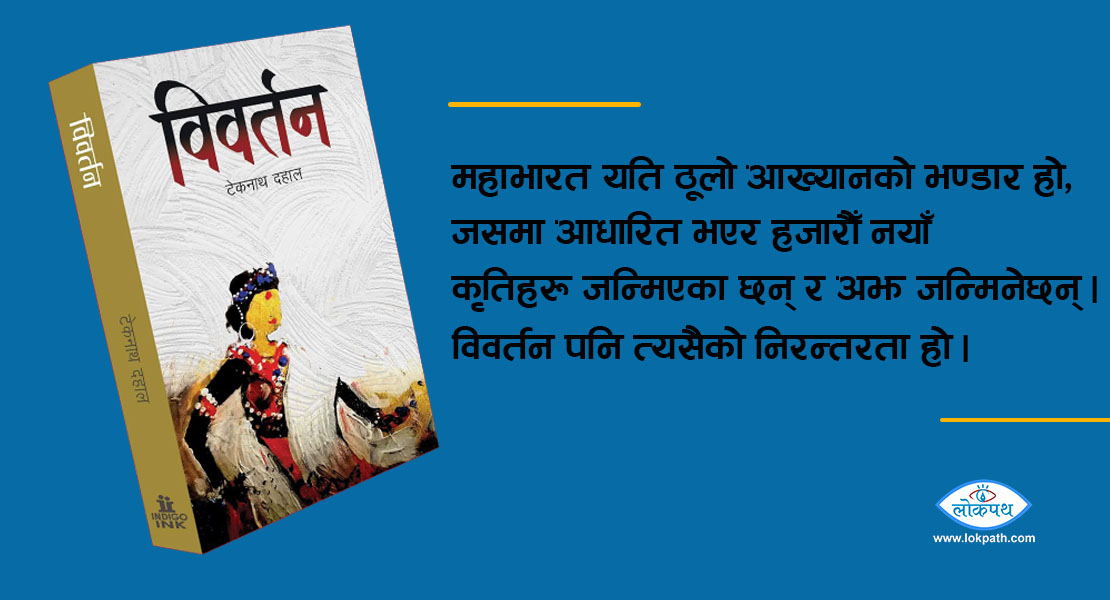 उपन्यासकार टेकनाथ दहालद्वारा लिखित विवर्तन उपन्यास महाभारतको कथामा आधारित छ । महाभारत यति ठूलो आख्यान भण्डार हो जसमा आधारित भएर हजारौँ नयाँ कृतिहरू जन्मिएका छन् र अझ जन्मिनेछन् । विवर्तन पनि त्यसैको निरन्तरता हो ।