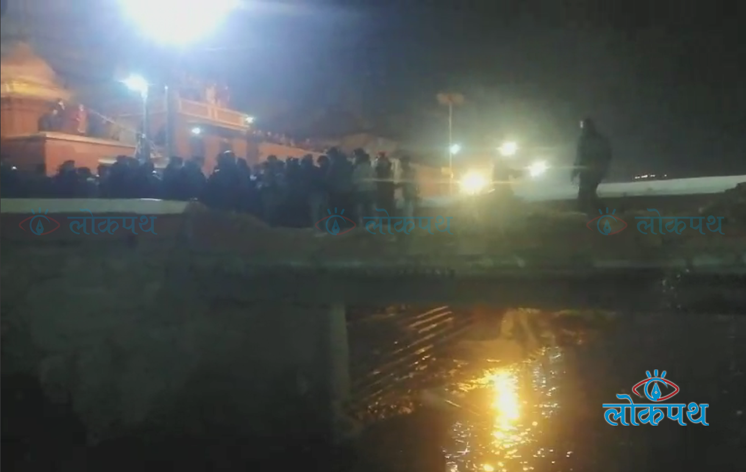 महाशिवरात्रि पर्वमा भेला भएका भक्तजनबीचको ठेलमठेल तथा अत्याधिक चापका कारण पुलको पर्खाल भत्किँदा युवक नदीमा खसेका हुन् ।