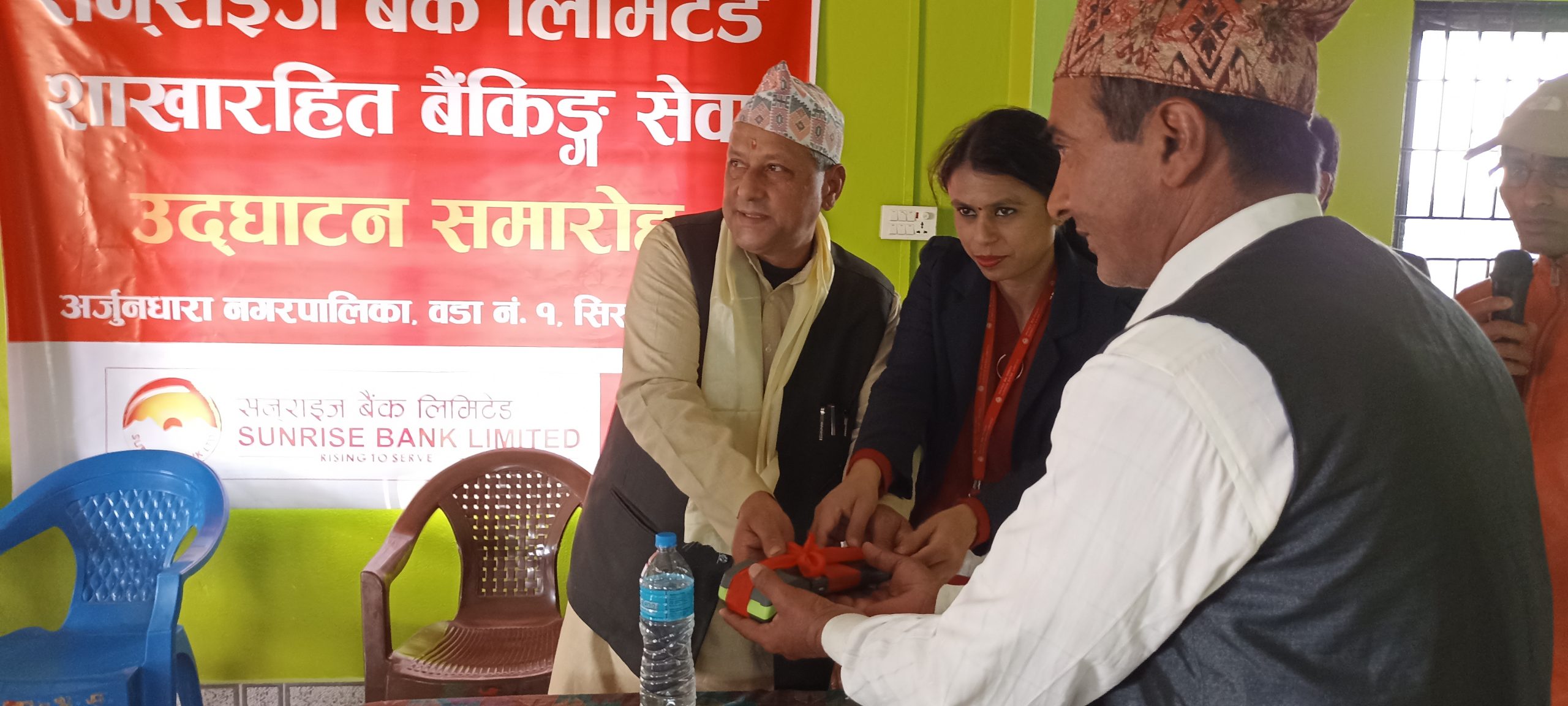 काठमाडौं । सनराइज बैंक लिमिटेड बुधबारे शाखाको आयोजनामा झापा जिल्लाको अर्जुनधारा नगरपालिका वडा नं.–१, शान्तिचोक, सिस्नेमा शाखारहित बैंकिङ्ग सेवाको सुरुवात गरेको छ । सो शाखारहित बैंकिङ्ग सेवा संचालनमा आएसंगै बैंकको शाखारहित बैंकिङ्ग सेवा संख्या ८७ पुगेको छ ।